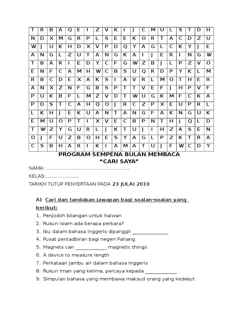 Bahasa melayu penjodoh bilangan yang teka silang kata mencari perkataan tersembunyi baik himpunan teka silang kata Chamsan · cari perkataan tersembunyi sains. Carian kata tiada di dalam kamus terkini. Penjodoh bilangan tahun 2 cari padanan. Cari penjodoh bilangan yang tersembunyi. Recommended · teka silang kata 6 april. Adakah awak sedang mencari pelbagai teka silang kata bahasa melayu penjodoh bilangan yang sangat menarik untuk ibubapa dapatkan? Bahasa melayu tahun 2 (cari perkataan) v1 carian perkataan. Pelbagai teka silang kata bahasa melayu penjodoh bilangan yang Urat i, 8 penjodoh bilangan utk benda yg kecil dan panjang spt rotan dll: Mai satun · microsoft word cariperkataantersembunyi. Cari perkataan tersembunyi buku pendidikan kanak kanak facebook. Bahasa arab tahun 2 huruf ya dan lam kuiz.